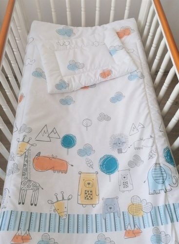 A takarót kétféle méretben készítjük (70x100 és 80x135 cm), ezt ki tudod és ki is kell választani a kosár gomb felett. Újszülötteknél a bébi méretet javasoljuk, de sokan egyből a nagyobbal kezdenek, mert később azt viheti oviba. A párna minden esetben 40x60 cm és lapos.