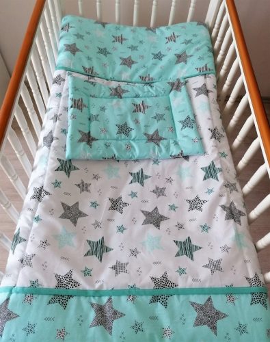 A takarót kétféle méretben készítjük (70x100 és 80x135 cm), ezt ki tudod és ki is kell választani a kosár gomb felett. Újszülötteknél a bébi méretet javasoljuk, de sokan egyből a nagyobbal kezdenek, mert később azt viheti oviba. A párna minden esetben 40x60 cm és lapos.