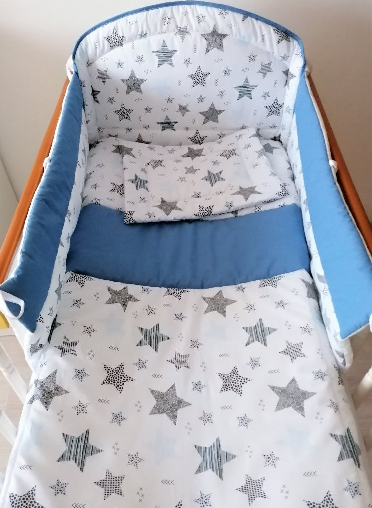 A babaágynemű szett tartalma a takaró, párna és rácsvédő