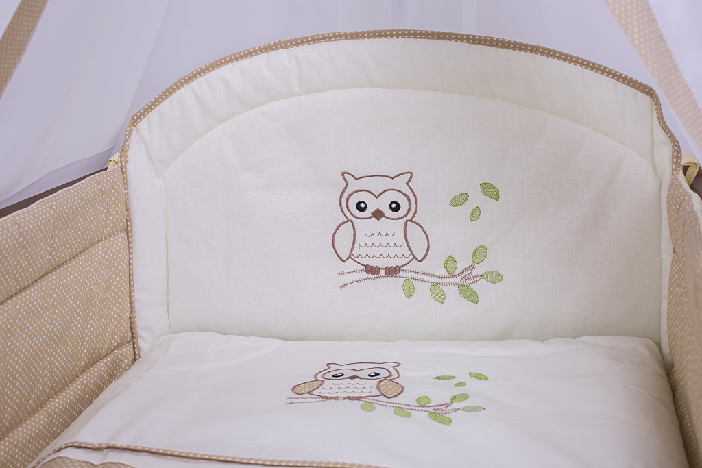 3 részes babaágynemű szett - Lulu bagoly bézs pöttyös