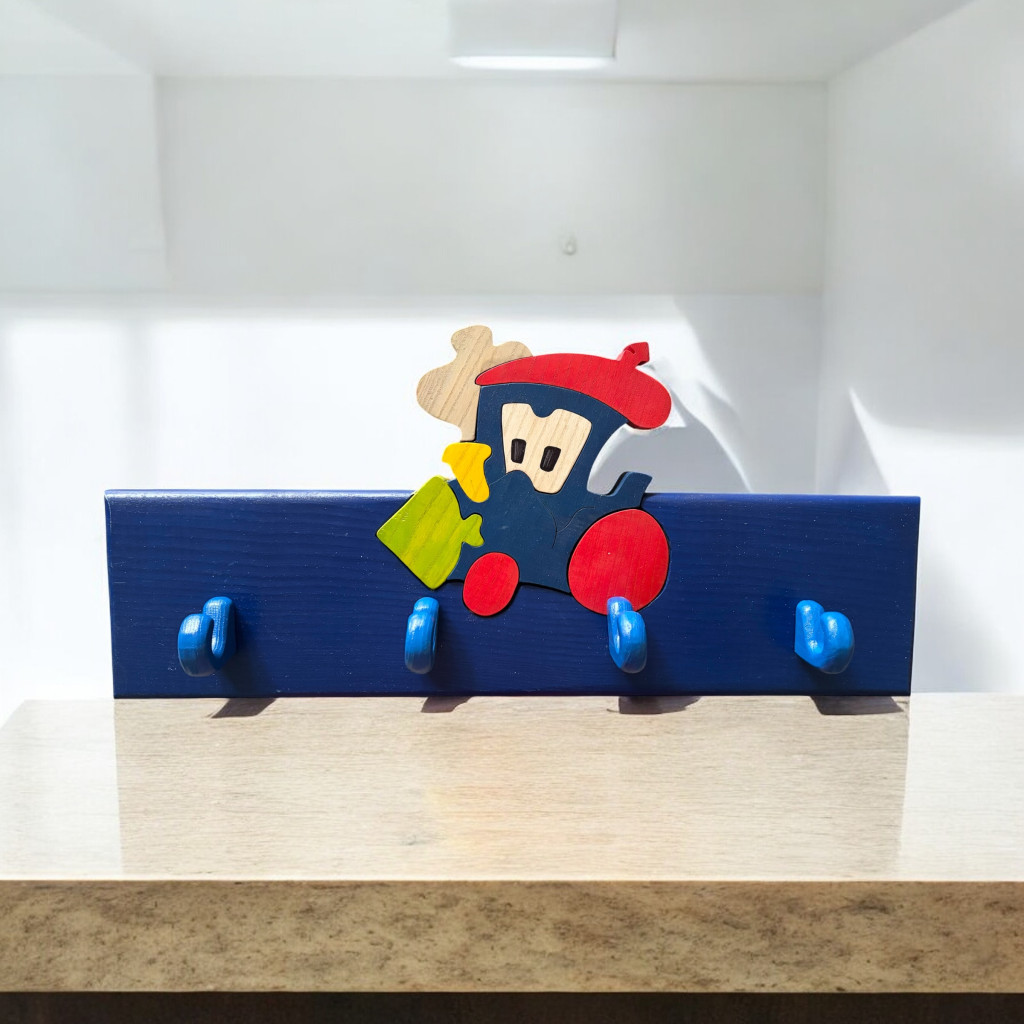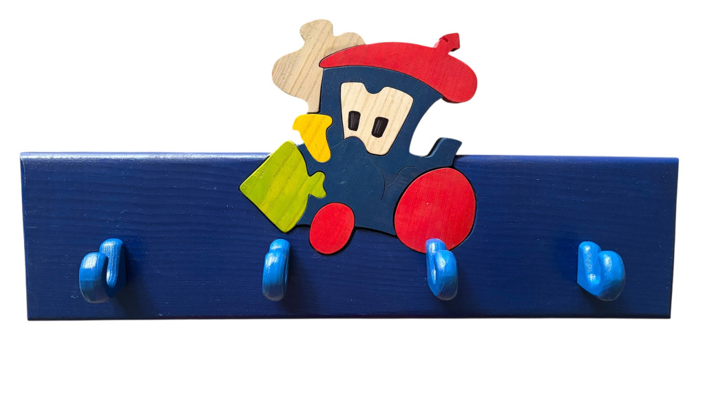 4 akasztós fogas fa gyermek fogas, bevágott mozdony dísszel