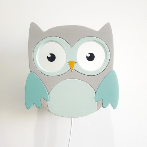 Bagoly  falilámpa, menta - gyereklámpa fából