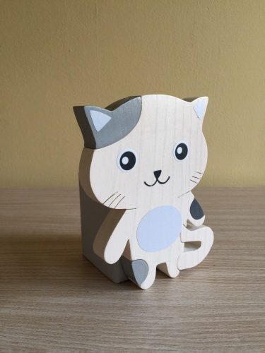 Cica ceruzatartó, fehér