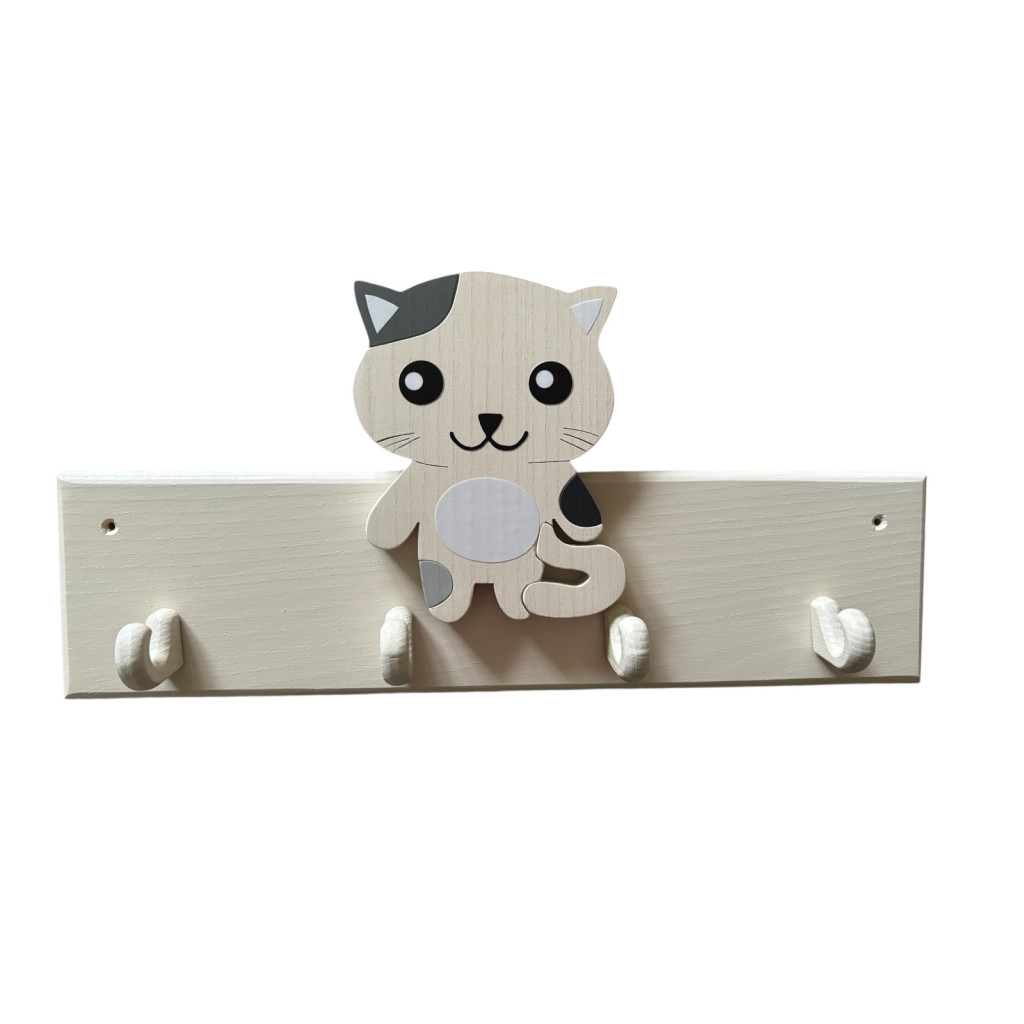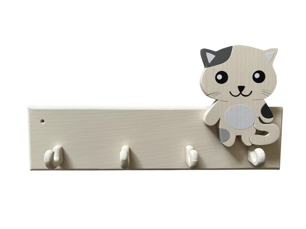 Kőrisfából készült 4 akasztós gyermek fogas, ráragasztható dísszel.