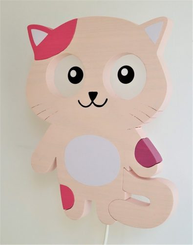 Cicás  fali lámpa, FOLTOS , rózsa - gyereklámpa fából