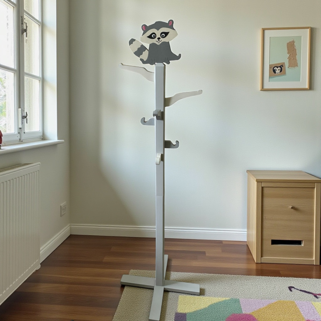 Szürke gyermek szobainas fából, mosómedve dísszel