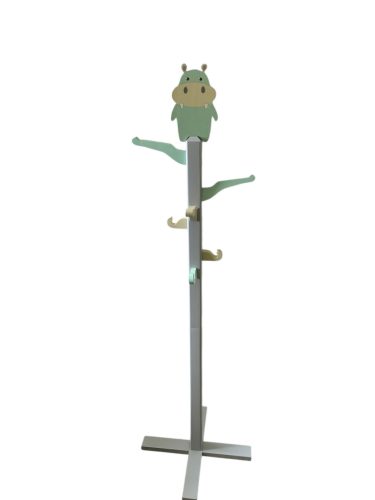Fából készült gyermek szobainas 8 akasztóval, fa viziló dísszel