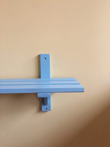 Kőrisfából készült polc, melynek a polclapját 3 léc alkotja.