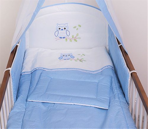 2 részes babaágynemű szett - Lulu bagoly , kék pöttyös